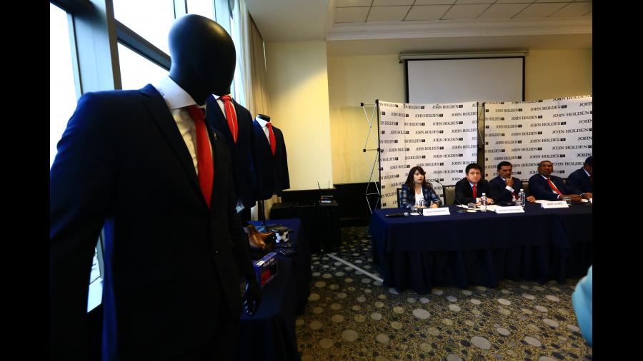 La colección cuenta con un traje de color azul índigo confeccionado principalmente en lana. En la parte exterior del saco tiene bordado las iniciales de la Federación Peruana de Fútbol (FPF) en color sobretono muy elegante y sutil, mientras que en la parte interior lleva un bordado Perú/Brasil 2019 en tonos rojos y blancos. Nuestro símbolo patrio, el Escudo Nacional del Perú está presente en el forro interior como un sello de agua en colores tonales.