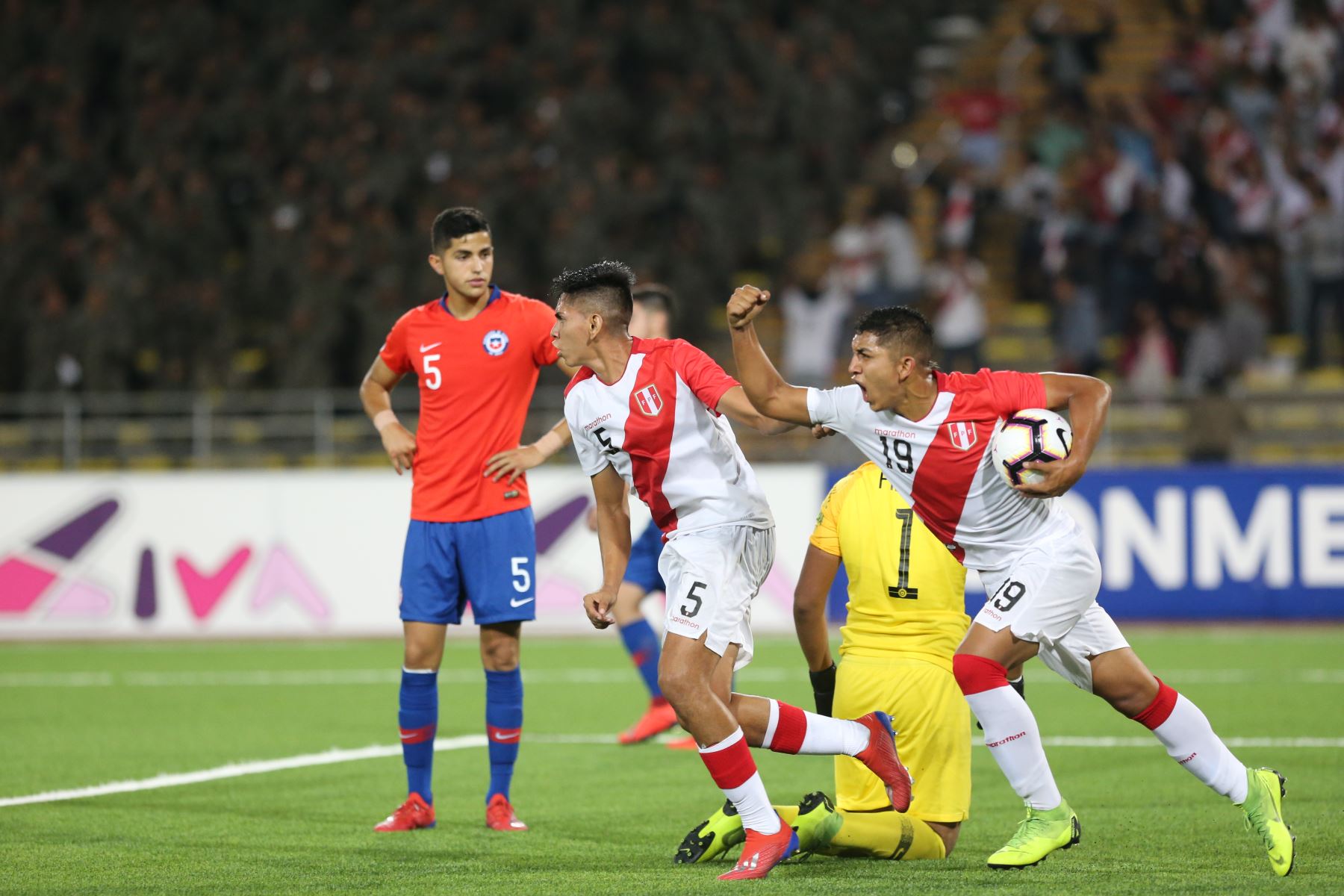 Ya en la segunda parte del encuentro, la selección peruana se reencontró con el gol gracias a Yuriel Celi, quien anotó el primero para la blanquirroja a los 53' de partido, mientras que Nicolás Figueroa se encargó de acortar distancias con Chile con un remate de cabeza, marcando así el 2-3 a los 56'.