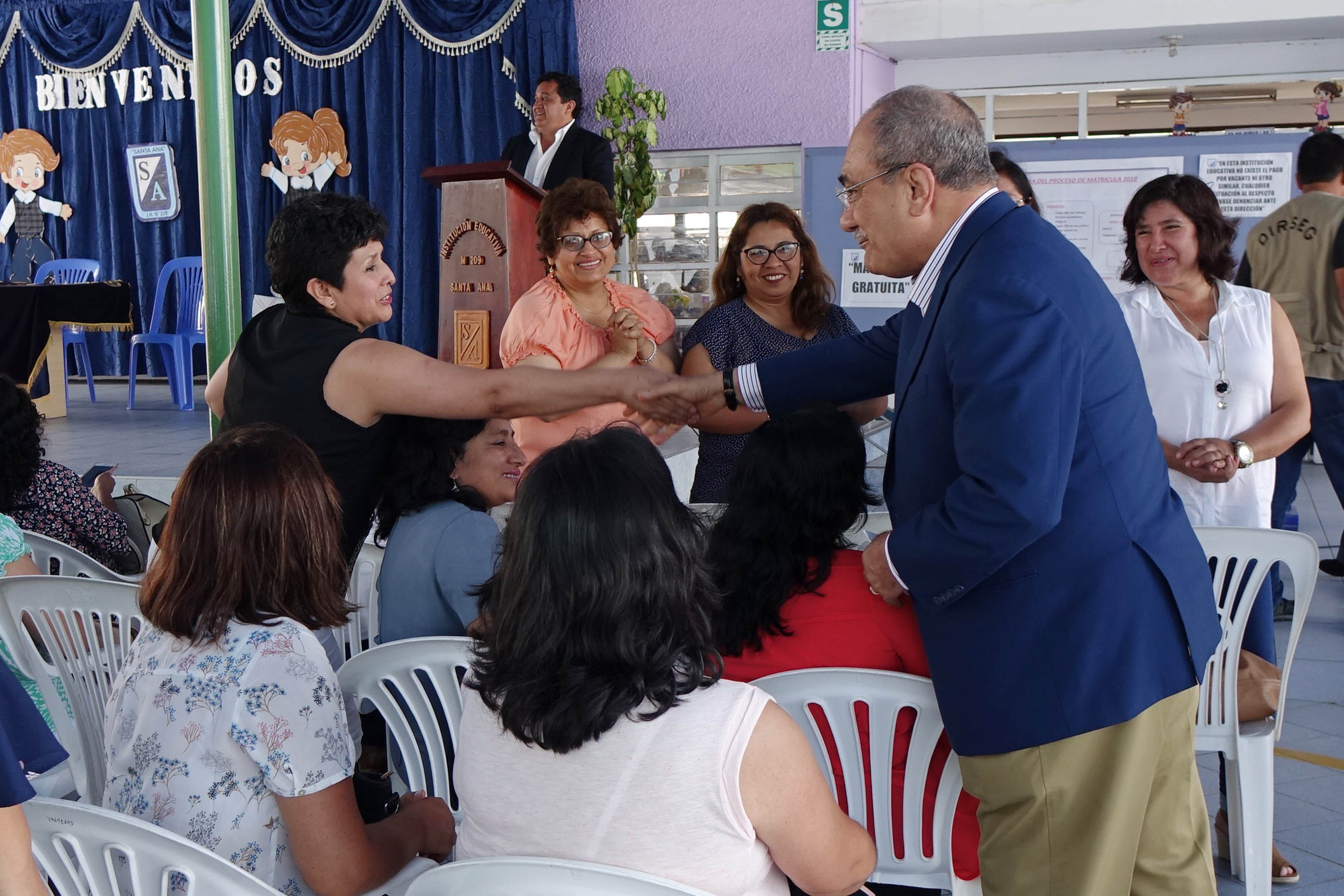 Durante más de dos horas el ministro conversó con las 300 maestras y directoras de las cuatro UGEL de Trujillo que llenaron el patio principal de la IE de inicial N.° 209 Santa Ana.