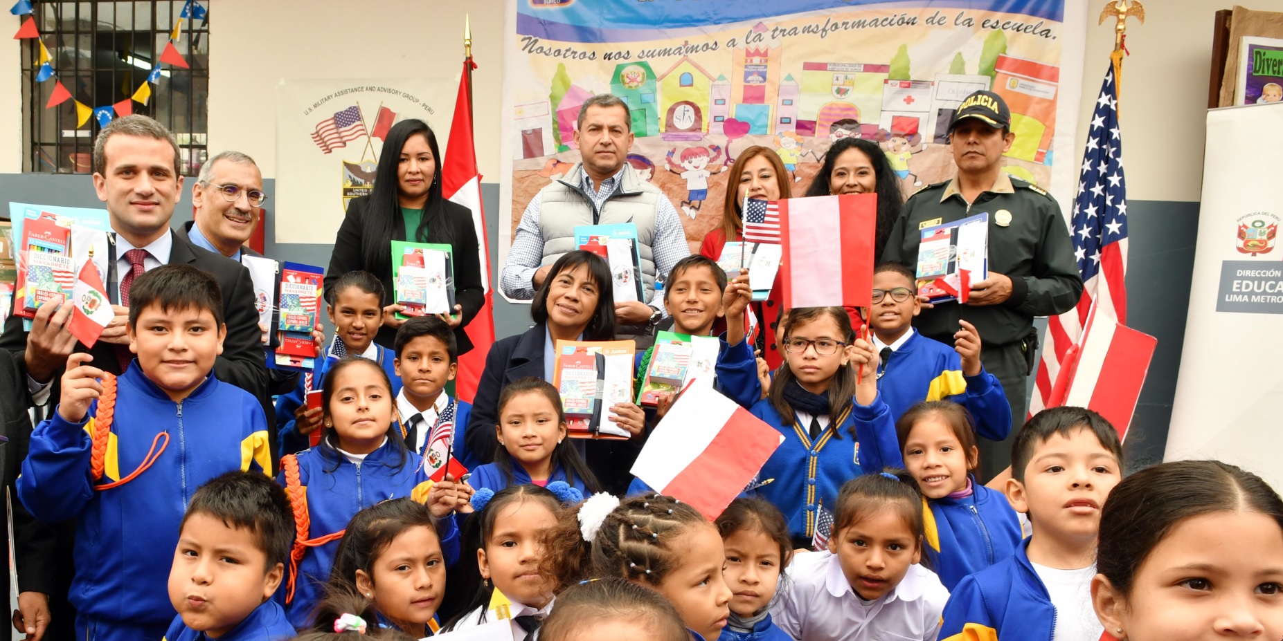 El Embajador de los Estados Unidos en el Perú, Krishna R. Urs, acudió al colegio Abraham Roldán Poma en el distrito de Surco para hacer entrega de una donación de más de 166 mil soles en útiles y cuadernos escolares, incluyendo 300 mochilas con libros para maestros y 16 mil kits escolares para igual número de estudiantes en 59 escuelas primarias de Lima Metropolitana.