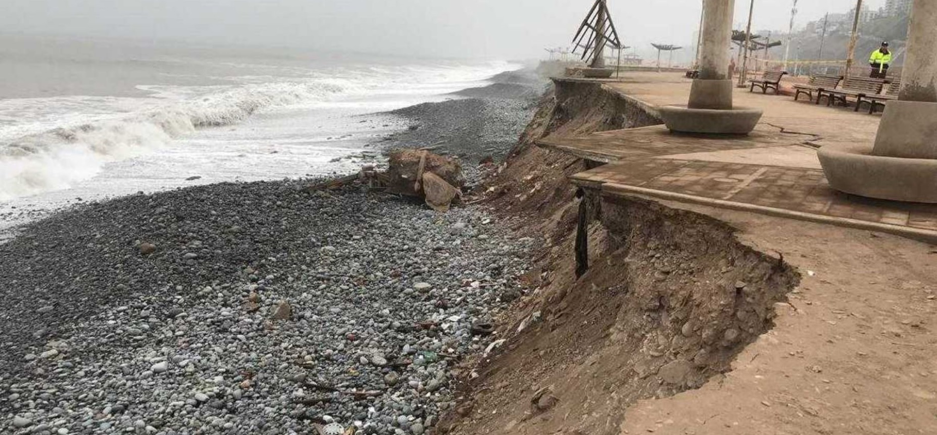 En un oficio remitido a EMAPE, la Gerencia de Desarrollo Urbano y Obras de la comuna de Magdalena informa sobre el deslizamiento de tierras costeras debido a los fuertes oleajes anómalos, hecho que pone en serio riesgo la vida de los visitantes, el mobiliario urbano y la infraestructura deportiva y de recreación.