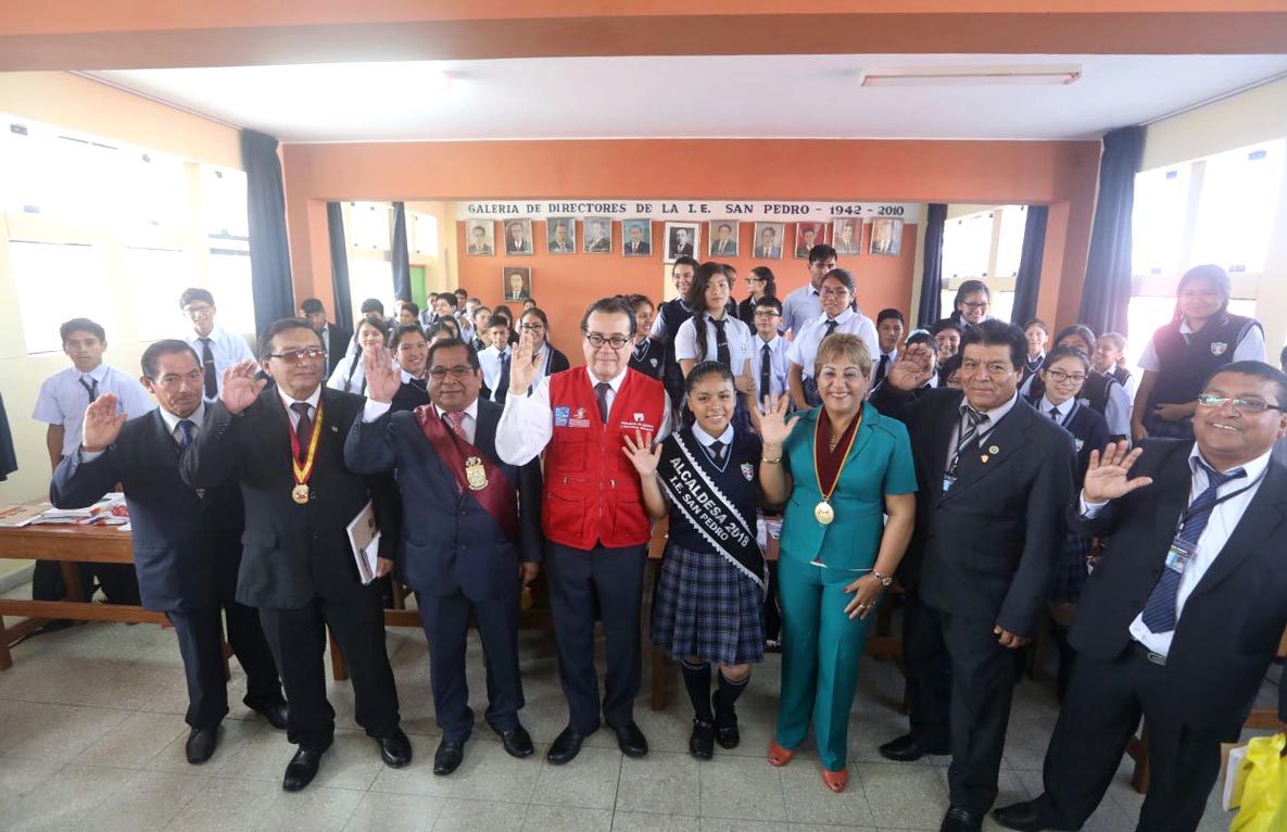 El ministro de Justicia y Derechos Humanos, Enrique Mendoza, dio inicio hoy al año escolar 2018 en la institución educativa emblemática San Pedro de Chimbote, la más antigua y representativa de esta ciudad.