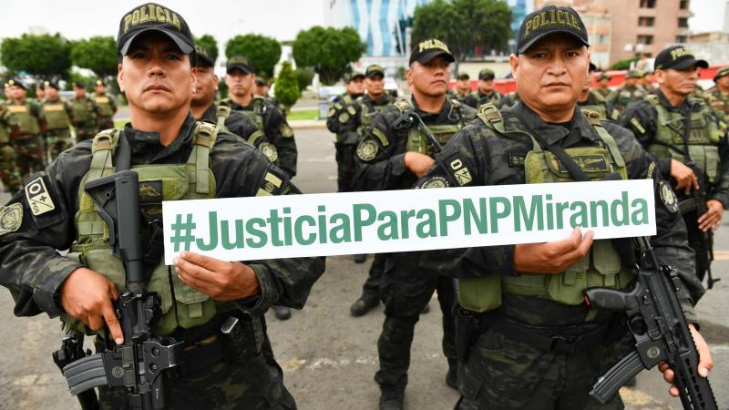 Durante la ceremonia de izamiento del Pabellón Nacional que se desarrolla el primer lunes de cada mes en la sede del Ministerio del Interior, tuvo esta mañana un detalle emotivo y diferente cuando policías de diversas unidades expresaron un mensaje colectivo de respaldo al suboficial Elvis Miranda, privado de su libertad por abatir a un delincuente en Piura.