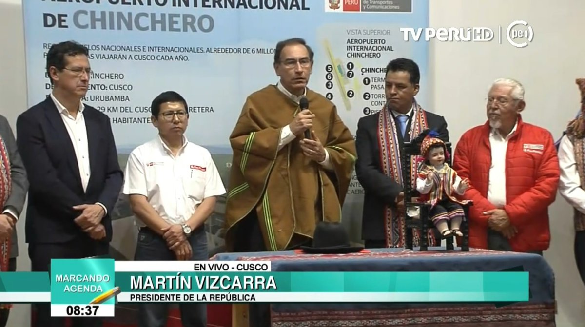 El Poder Ejecutivo espera que el aeropuerto de Chinchero en el Cusco esté concluido al 2021 con ocasión del Bicentenario de la Independencia, señaló el presidente Martín Vizcarra, al participar en la firma del contrato para el movimiento de tierras de dicho terminal aéreo.