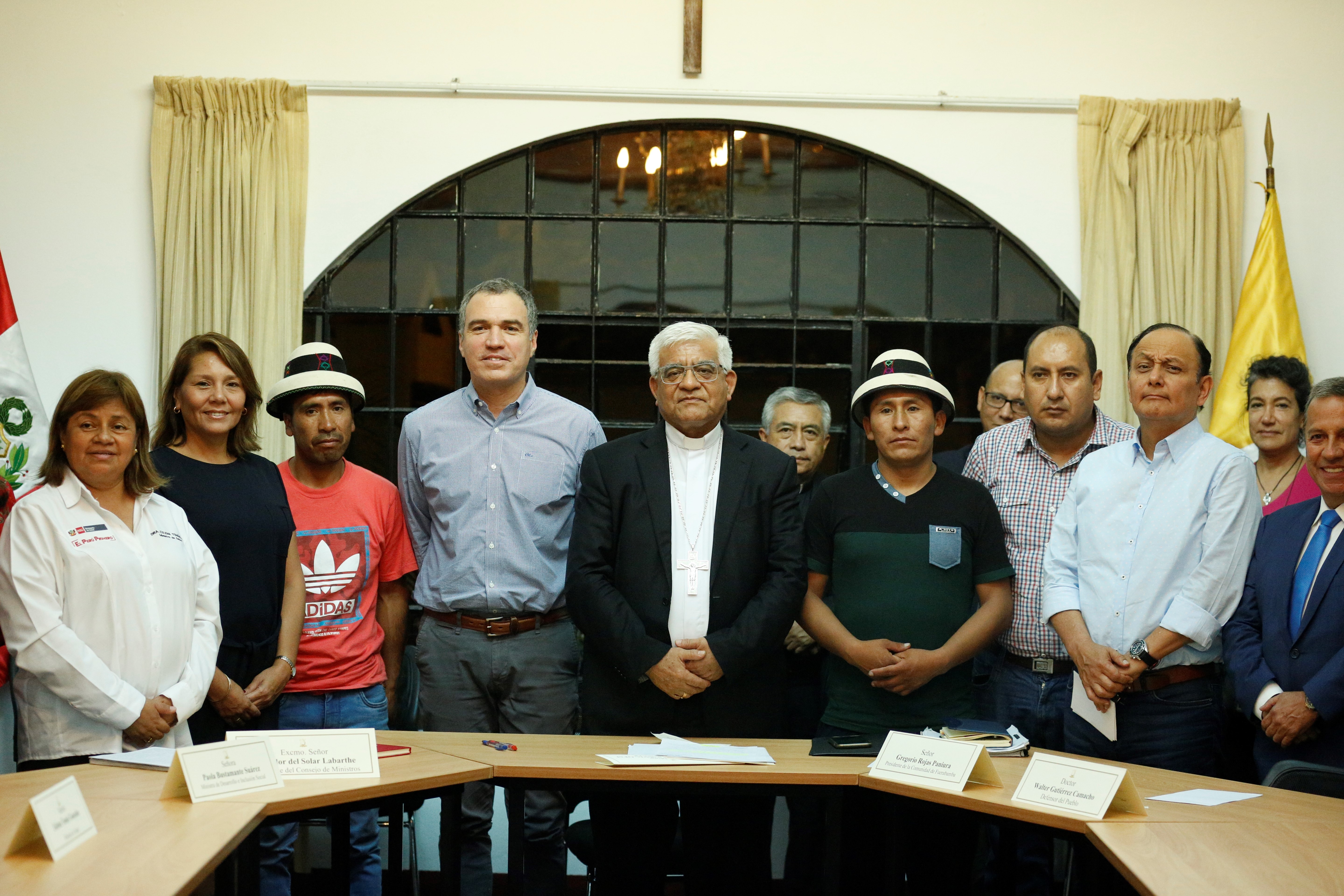 El presidente del Consejo de Ministros, Salvador del Solar, participó ayer en la reunión que se desarrolló en la sede de la Conferencia Episcopal Peruana, junto al presidente de la comunidad de Fuerabamba, Gregorio Rojas, en aras de llegar a una solución al conflicto en el corredor minero Las Bambas.