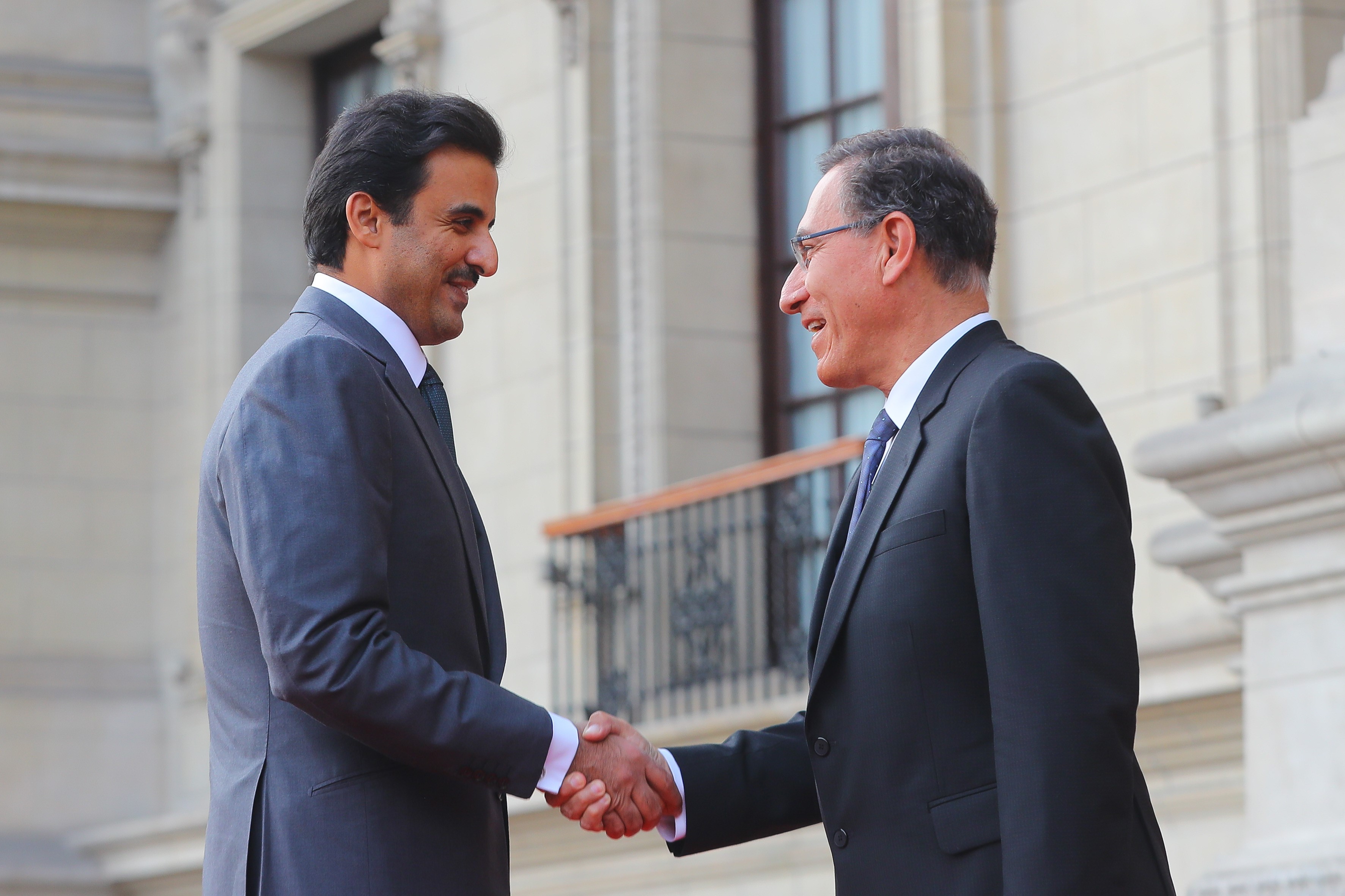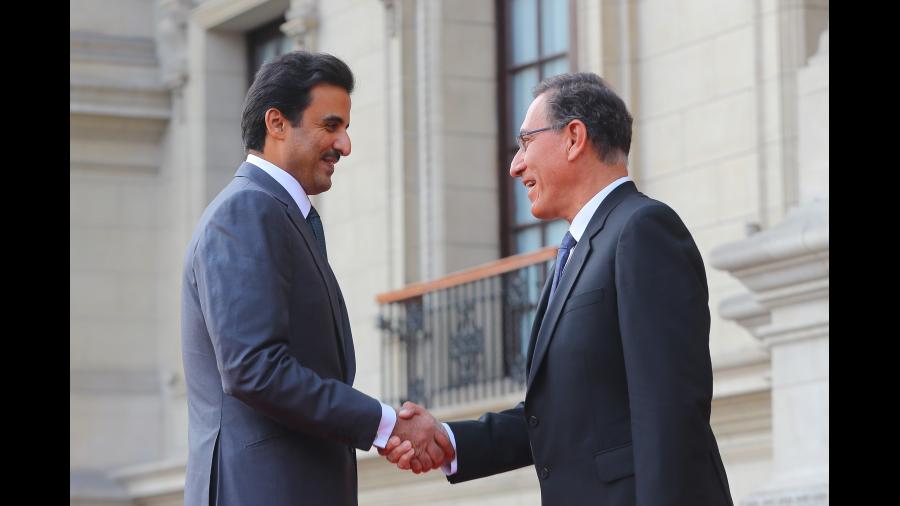 El jefe de Estado, Martín Vizcarra, recibió esta tarde en Palacio de Gobierno al emir de Qatar, Tanim bin Al Thani, en el marco de su visita oficial al Perú.