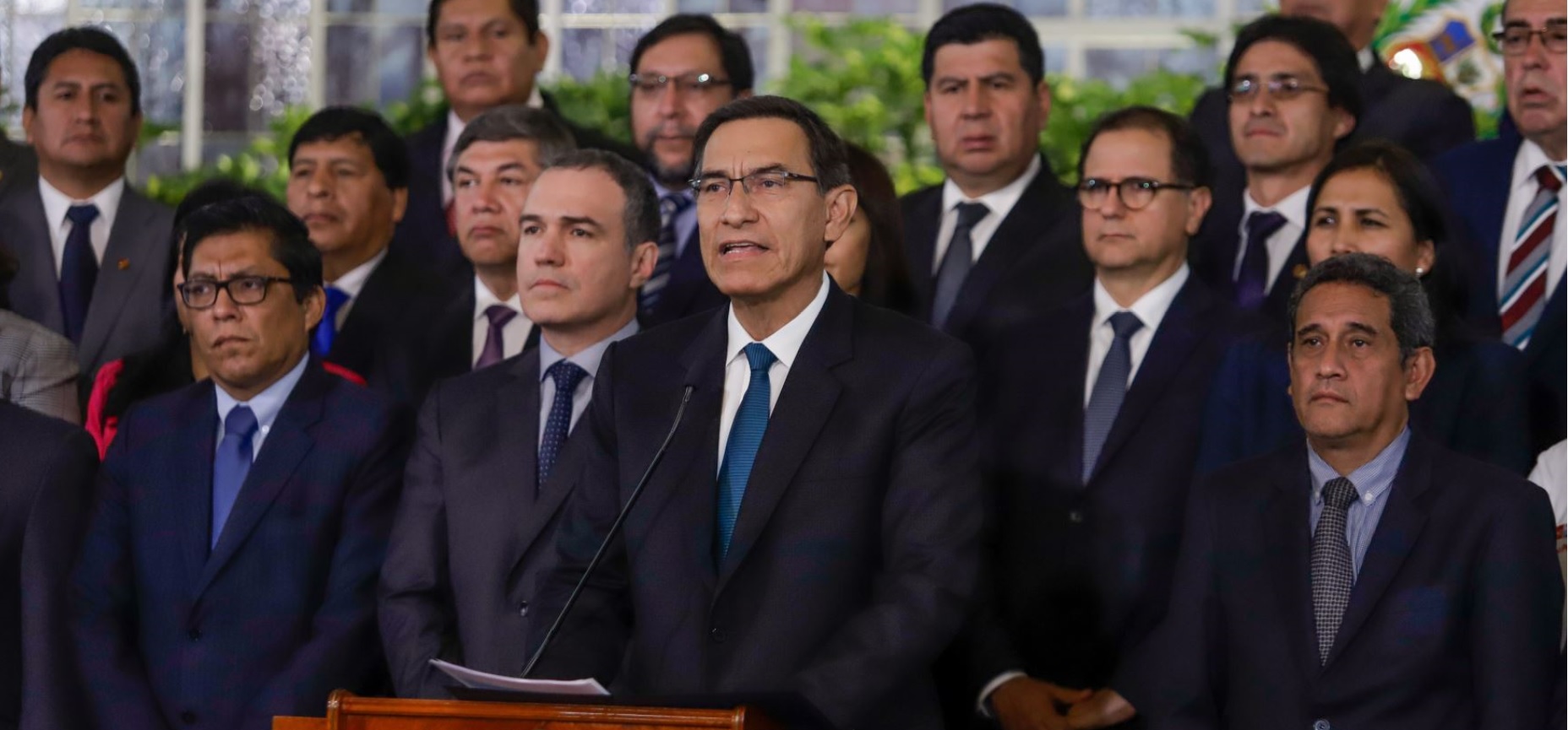 “El día de ayer en la Comisión Permanente del Congreso hemos observado un descarado blindaje”, subrayó el presidente Vizcarra rodeado de los miembros del Gabinete de Ministros y de los gobernadores regionales que conforman la Asamblea Nacional de Gobiernos Regionales (ANGR).