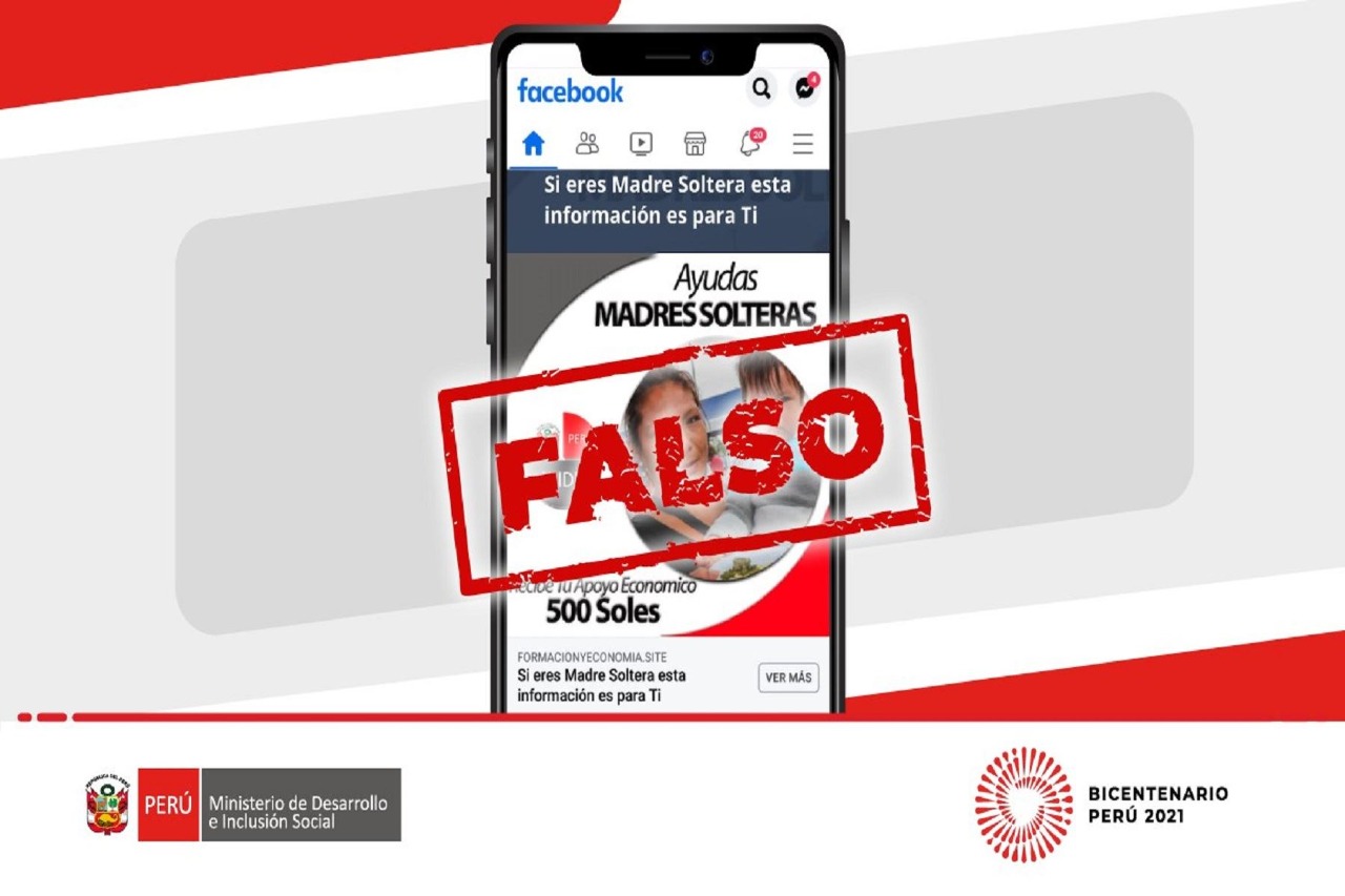 A través de sus redes oficiales, el Ministerio de Desarrollo e Inclusión Social (Midis) advirtió de anuncios falsos que circulan en las redes sociales sobre supuestas ayudas económicas y aclaró que los bonos del Estado son comunicados mediante los canales oficiales.