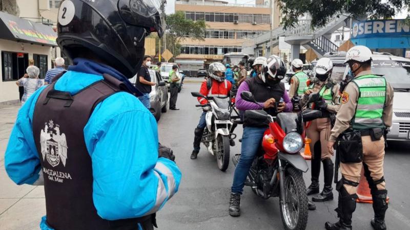 Distrito de Magdalena fiscaliza circulación de motos con dos pasajeros