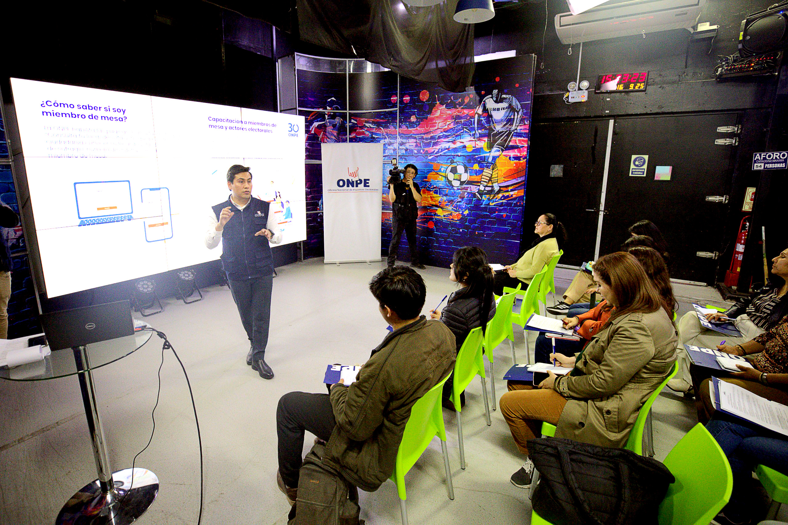 Durante la charla, liderada por Yordan Mañuico, especialista en educación electoral de la ONPE, se abordaron diversos temas relacionados con el proceso electoral como las elecciones primarias, las modalidades elegidas por las organizaciones políticas, el rol de los miembros de mesa, el retorno al sistema bicameral en el Poder Legislativo, el voto digital y los protocolos a seguir durante la jornada de votación.