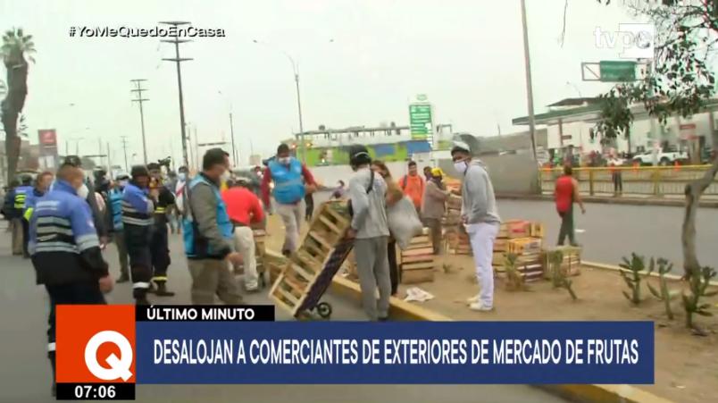 Personal de Fiscalización de la Municipalidad de San Luis decomisó esta madrugada jabas y cajas con frutas que se vendían de manera informal en las inmediaciones del Mercado Mayorista de Frutas N° 2, en la zona correspondiente al distrito en el límite con la jurisdicción de La Victoria.