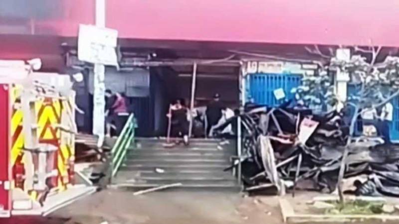 Asimismo, se reportó una persona herida, quién sería un comerciante. "Hemos tenido a una sola persona que ha recibido cortes en la desesperación de salvar sus cosas", dijo.