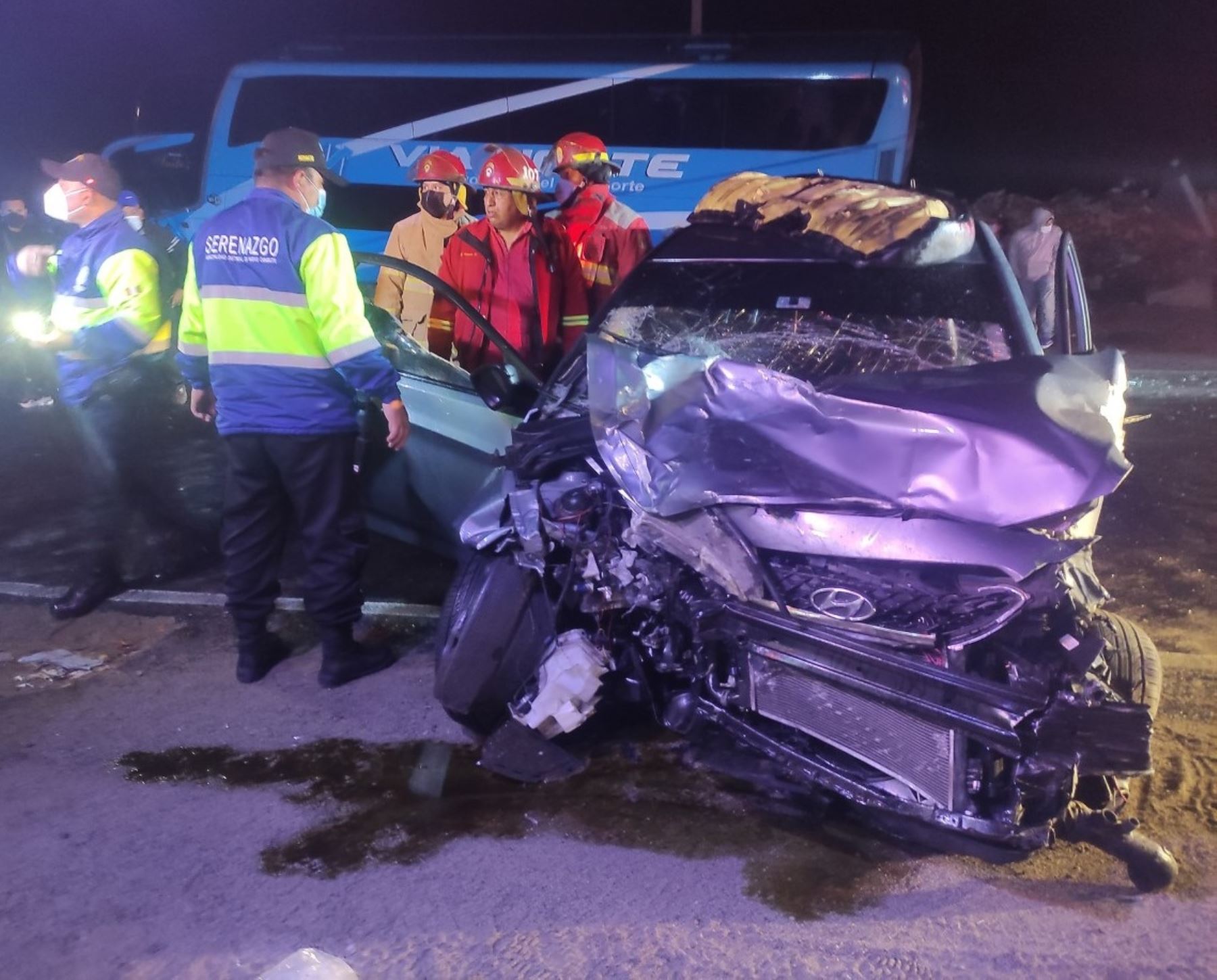 El auto de placa H2E-192, el ómnibus interprovincial de matrícula C9C-953 y la furgoneta de placa BCJ-825; chocaron de manera seguida, por causas que aún son materia de investigación.