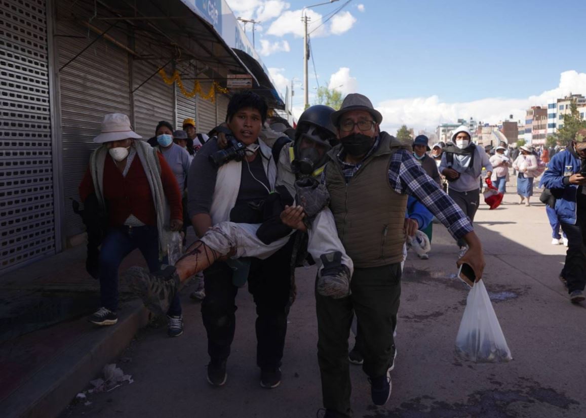 El gremio periodístico denunció que el fotoperiodista Aldair Mejía fue impactado por un proyectil en la pierna durante la cobertura de las protestas en Juliaca, este sábado 7 de enero.