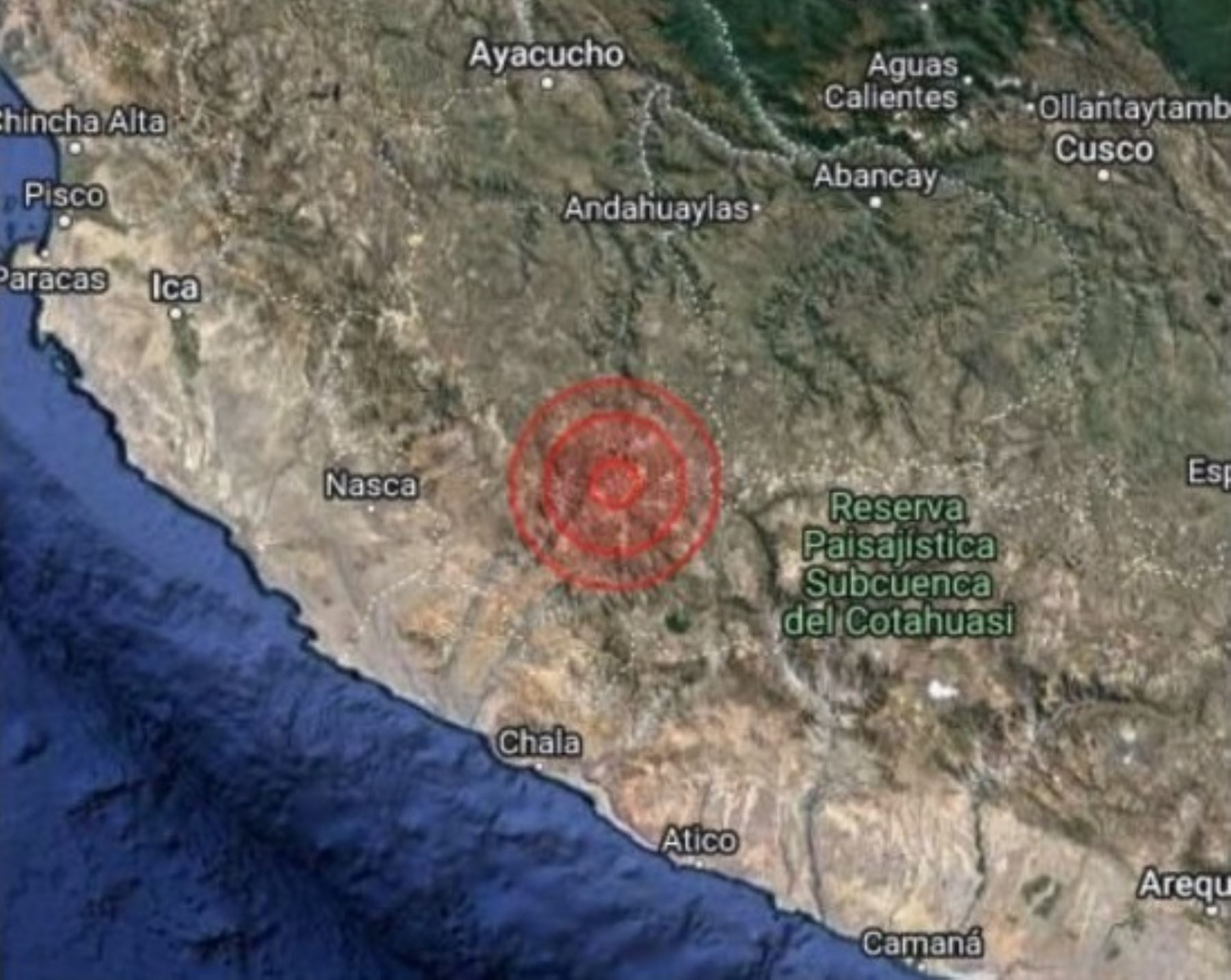 El epicentro se localizó a 20 kilómetros al este de la localidad de Puquio, distrito del mismo nombre, en la provincia de Lucanas. De acuerdo con el reporte del IGP, el evento sísmico no fue percibido por la población local.