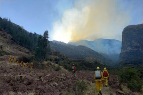 En estas labores participan guardaparques bomberos forestales del Servicio Nacional de Áreas Naturales Protegidas por el Estado (Sernanp), autoridades y pobladores.