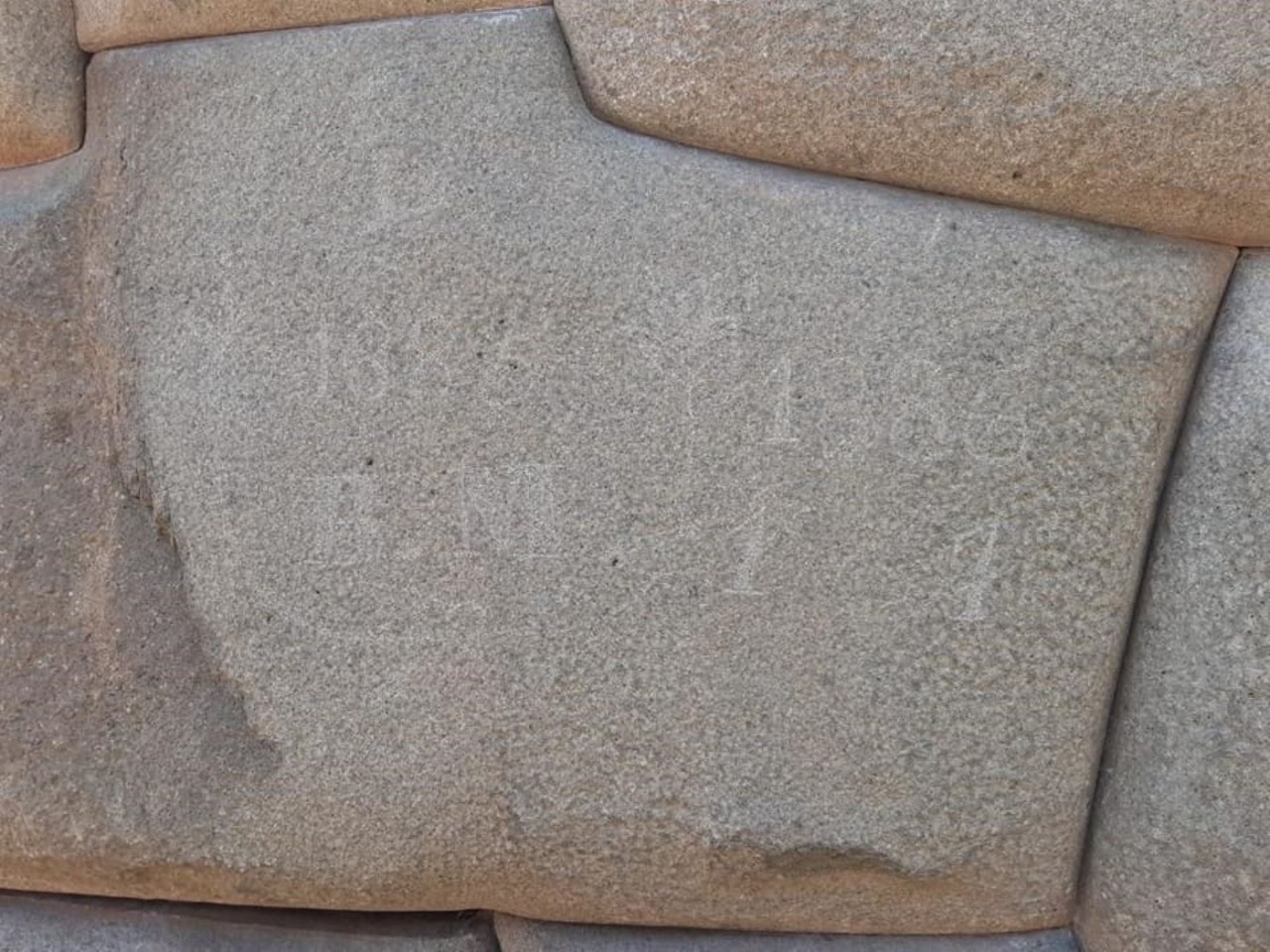 El muro en mención está ubicado en la parte posterior de la piedra de los 12 ángulos o Hatunrumiyoc, las autoridades verificaron el daño y señalaron que en la roca han quedado grabadas las siguientes inscripciones: “1885, 1886, BM, 1 y 7” y el dibujo de una flor, de aproximadamente siete centímetros de largo por dos centímetros de ancho, hechas aparentemente con un elemento metálico con filo y punta.