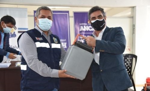 En la región Áncash, un total de 57 termos para almacenamiento y 50 data loggers (termómetro digital para el control de temperatura durante el almacenamiento de vacunas) fueron entregados en calidad de donación para garantizar y fortalecer el proceso de vacunación en la ciudad de Chimbote, provincia del Santa.