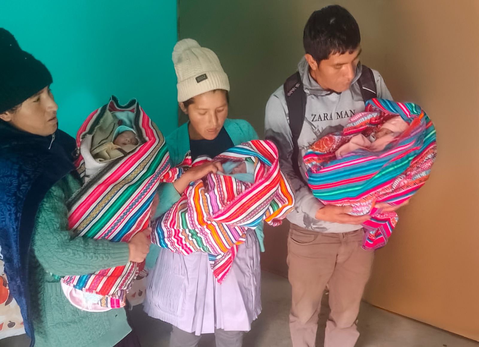 Andrés Chinchay, el padre, confesó que cuando supo que eran trillizas se preocupó mucho, pero ahora está feliz. Ellos se dedican a cosechar maíz, cebada y fruta como principal fuente de ingreso y señalan que se encomiendan a Dios para que puedan sacar adelante a sus hijitas.
