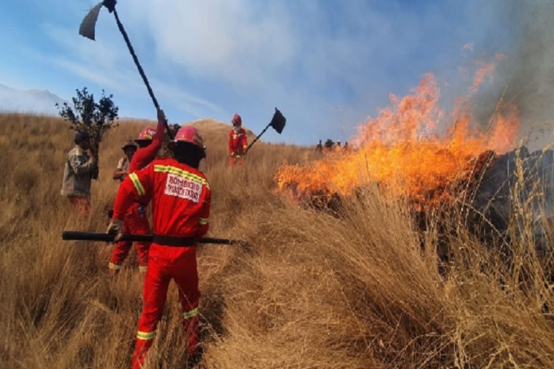 Más 80 miembros del Ejército, 100 bomberos, 20 brigadistas del Sernanp y más de 250 comuneros trabajarán en sofocar el fuego por tierra.