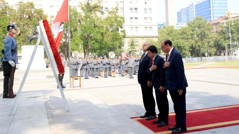 El presidente de la república, Pedro Castillo Terrones, participó en la ceremonia de colocación de una ofrenda floral ante el monumento de Bernardo O'Higgins, en la plaza de la Ciudadanía, en Santiago de Chile.