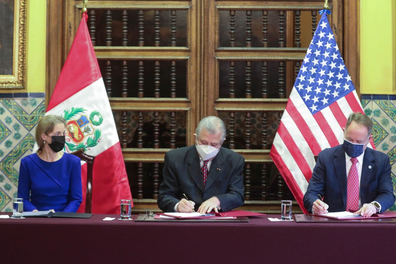 De esta manera, los gobiernos del Perú y de Estados Unidos sellaron el acuerdo en presencia de la Embajadora de los Estados Unidos en el Perú Lisa Kenna, en ceremonia realizada en Palacio de Torre Tagle.