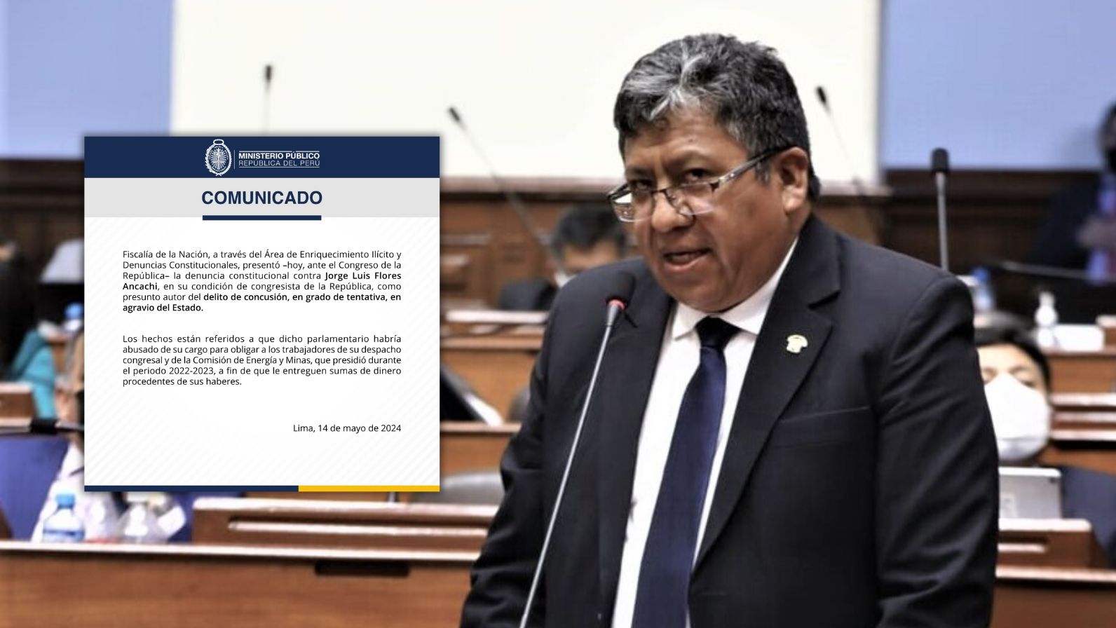 La Fiscalía de la Nación, a través del Área de Enriquecimiento Ilícito y Denuncias Constitucionales, presentó una denuncia constitucional contra el congresista Jorge Flores Ancachi (Acción Popular) por el caso Mochasueldos.