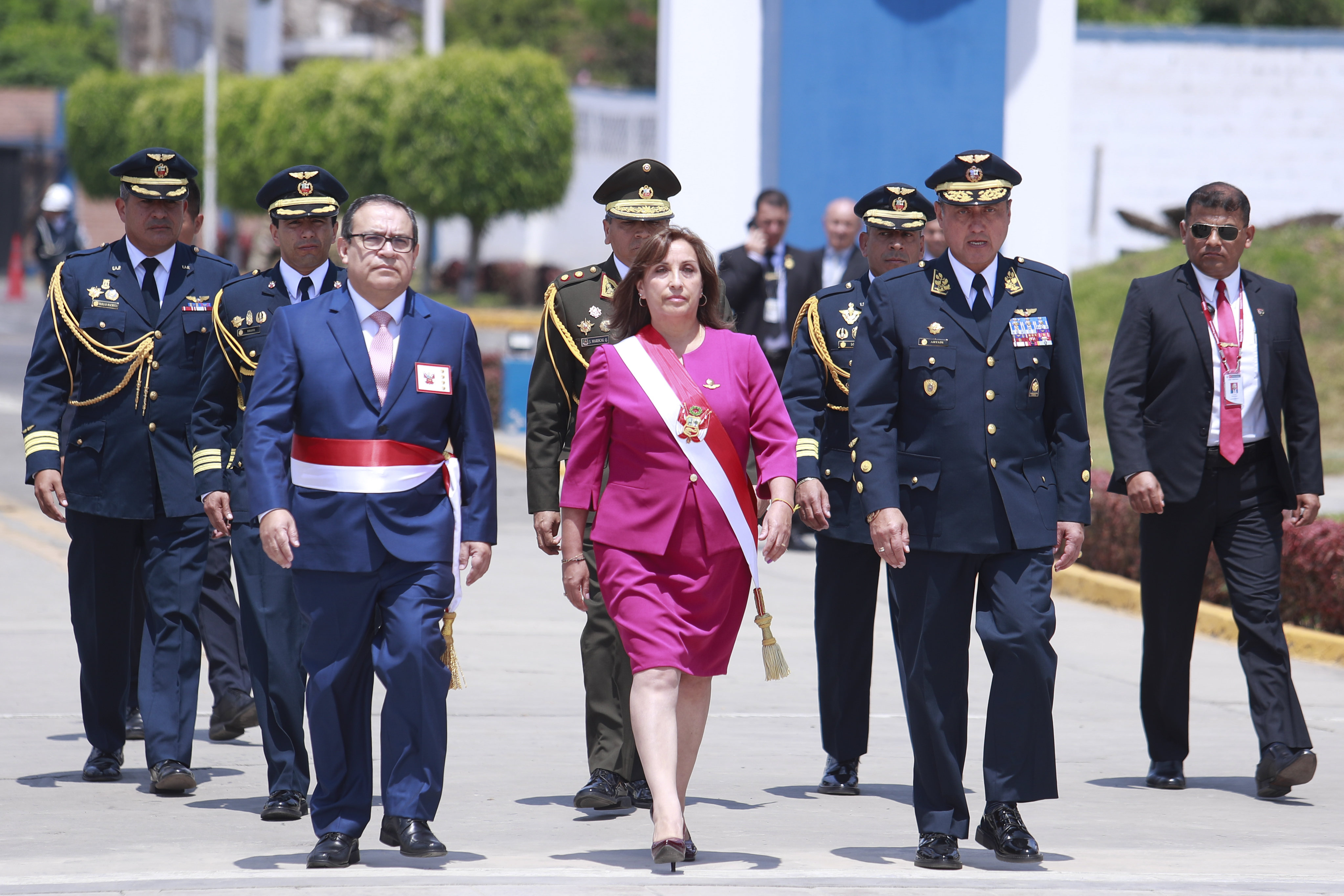 Boluarte Zegarra brindó su discurso en la ceremonia de clausura del año académico 2022 de la Escuela de Oficiales de la Fuerza Aérea del Perú (FAP) y graduación de la promoción “Comandante FAP Michael Eduardo Quiroz Plefke”, en la Base Aérea Las Palmas, en Surco.