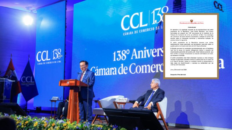 El presidente José María Balcázar aclaró sus declaraciones sobre el pueblo judío tras la controversia generada por sus palabras durante el 138.° aniversario de la Cámara de Comercio de Lima.