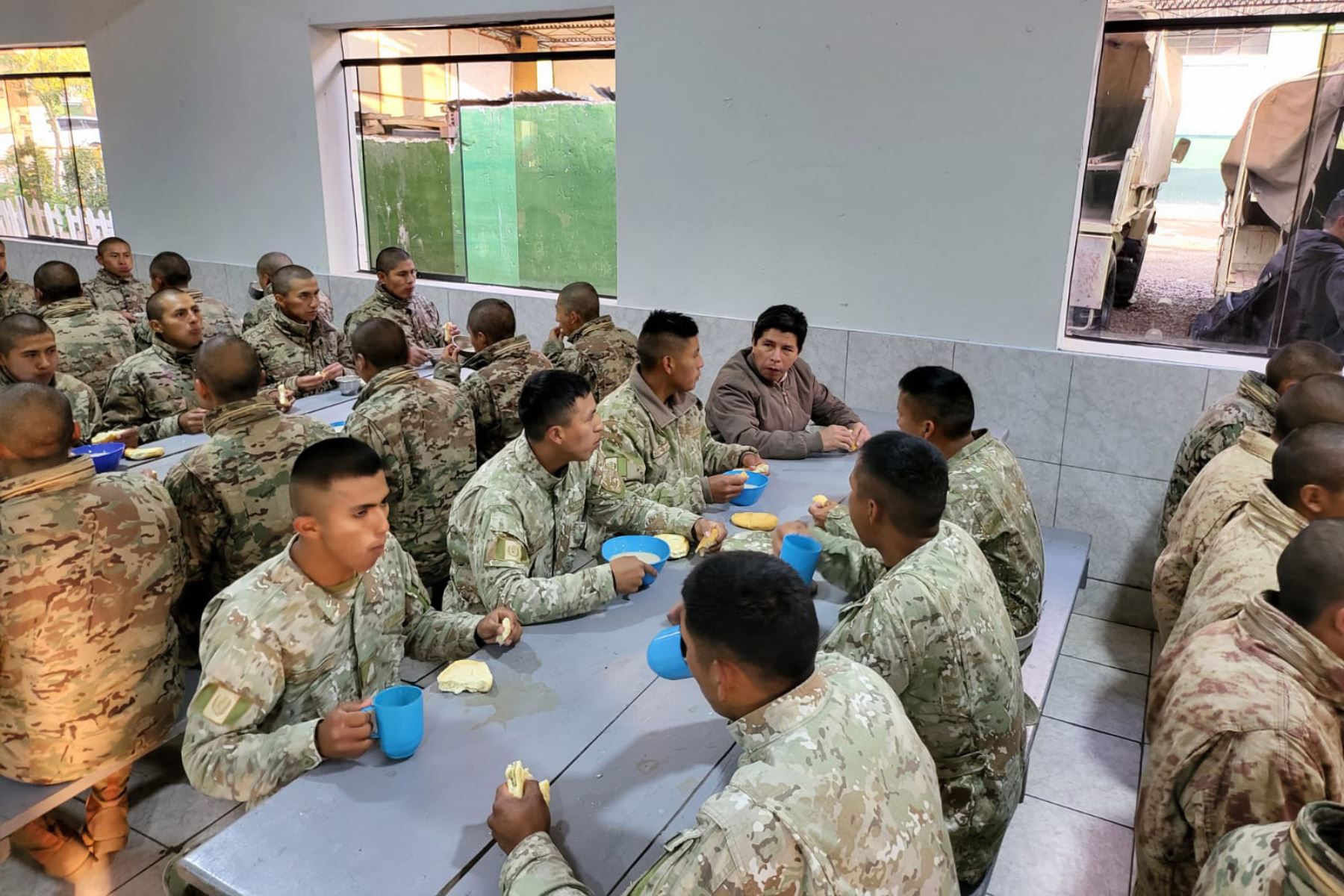 Esta mañana el presidente Pedro Castillo realizó una visita a las instalaciones del cuartel Agustín Gamarra en la región Cusco, compartiendo un desayuno junto a los jóvenes de las tropas.