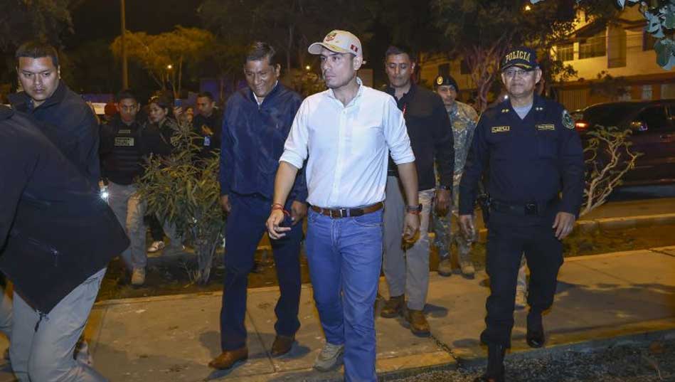 Posteriormente, el mandatario se trasladó a San Martín de Porres, donde verificó el trabajo combinado de la Policía Nacional del Perú, las Fuerzas Armadas y el serenazgo municipal en la zona de Huandoy para reducir el índice delictivo en zonas de alta peligrosidad.