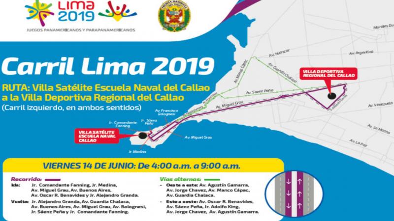 Por eso, la Dirección de Tránsito realizará este viernes, la “Segunda Prueba del Carril Lima 2019”, en las vías por donde se desplazarán los vehículos oficiales que transportarán a más de mil atletas, además de jueces, árbitros, periodistas acreditados, voluntarios y comitiva oficial, cuando transiten por el Callao.
