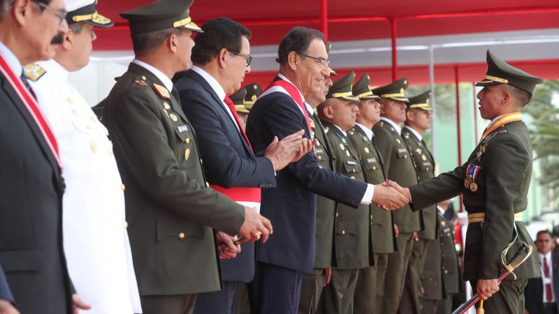 En ceremonia encabezada por el presidente de la República, Martín Vizcarra Cornejo, 143 cadetes de la Escuela Militar de Chorrillos “Coronel Francisco Bolognesi”, entre ellos un miembro de la comunidad asháninka, se graduaron como flamantes oficiales del Ejército del Perú, tras culminar con éxito una carrera militar de cinco años.