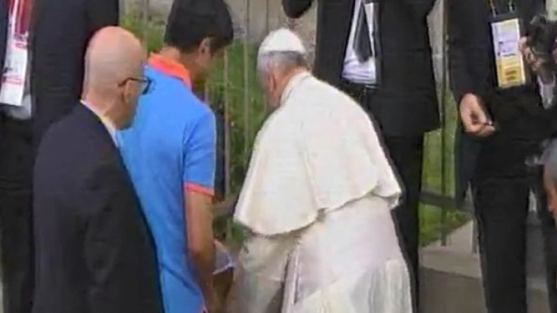El Papa Francisco tuvo un conmovedor gesto con una niña delicada de salud al acercarse a la menor y besarle la frente minutos antes que dejara la Nunciatura de Lima para dirigirse rumbo a Puerto Maldonado.