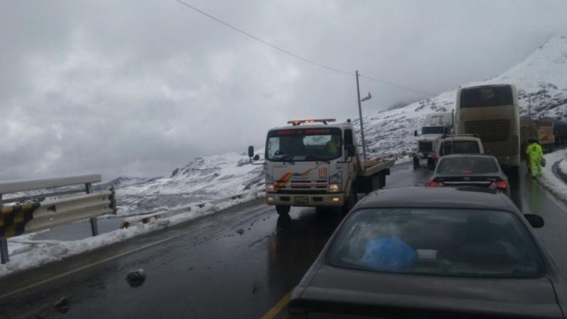 Desde las 11:25 horas de hoy se registra la caída de granizo intenso a la altura del kilómetro 124 al 130 de la carretera Central, en la zona de Casapalca, provincia de Huarochirí, región Lima.