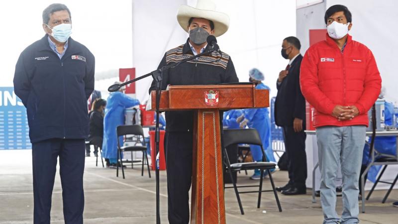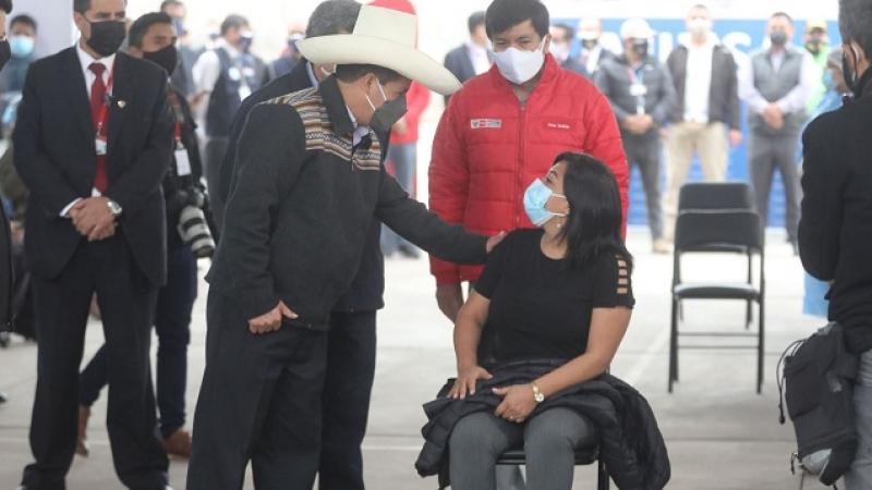 Durante la supervisión de la vacunación de los docentes urbanos, que se desarrolla en la Gran Unidad Escolar "José Granda" de San Martín de Porres, el presidente Pedro Castillo afirmó hoy que se garantizará la vacuna a los maestros de cada rincón del país, al destacar la labor docente como "soldados" en cada comunidad, caserío y barrio del territorio nacional.