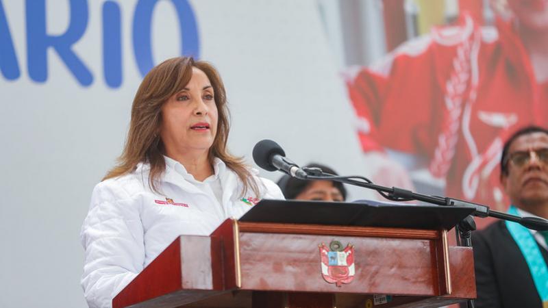 La presidenta de la república, Dina Boluarte, inaugura hoy la Escuela Bicentenario, I.E. 1221, María Parado de Bellido, ubicado en el distrito de Santa Anita.