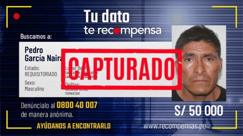 La Policía Nacional del Perú capturó en la región Loreto a un prófugo de la justicia, incluido en el Programa de Recompensas del Ministerio del Interior (Mininter), por los delitos de feminicidio y violación sexual en agravio de una menor de edad.
