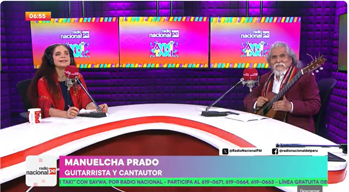 Con una trayectoria musical de más de 50 años, el cantautor ayacuchano Manuel Prado Alarcón, conocido artísticamente como "Manuelcha" Prado, participó en el programa Ayni Takiy, donde compartió detalles sobre sus composiciones y el espectáculo que prepara por primera vez en el Gran Teatro Nacional.