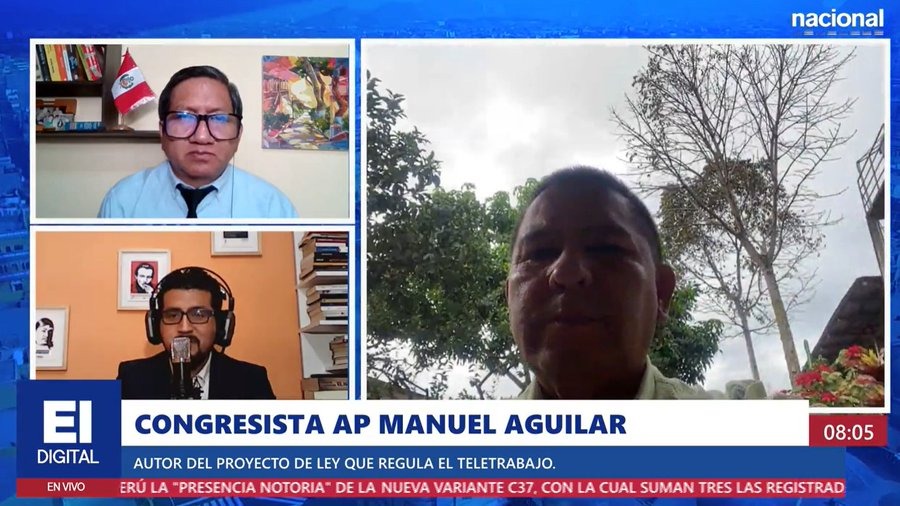 En entrevista para El Informativo, el congresista y autor del proyecto de ley que regula el Teletrabajo, Manuel Aguilar sostuvo, “lo más resaltante quizás, es que el trabajador tiene el derecho a la desconexión digital, lo que quiere decir que trabajará como en oficina”.
