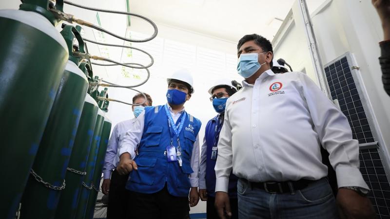 Además, supervisó el funcionamiento de 02 plantas de oxígeno medicinal, las cuales tienen una capacidad de 45 m3, cada una, y abastecen en total más de 200 balones por día.