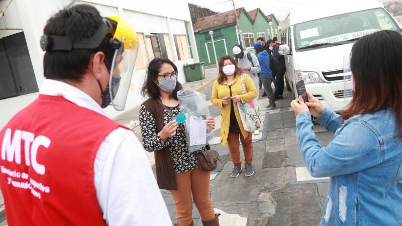 Hasta el momento, más de 2 400 000 usuarios del transporte público urbano de diferentes ciudades del interior del país han recibido, de manera gratuita, protectores faciales de parte de las municipalidades provinciales con el fin de evitar el riesgo de contagio del covid-19 durante sus viajes cotidianos.