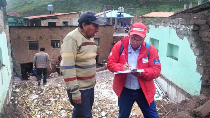 “Nuestros especialistas de Catastro llegaron hasta Pisac y realizaron la evaluación de 18 viviendas afectadas por las lluvias, teniendo como resultado, 1 (una) vivienda colapsada, 7 declaradas inhabitables, 8 con afectación moderada y 2 con afectación leve”, informó el Director Ejecutivo de COFOPRI, César Figueredo Muñoz.