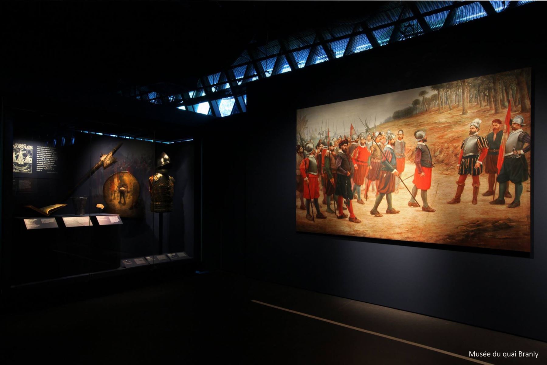 Con la reconstrucción de los momentos claves de la historia del continente suramericano, la exposición se articula en torno a los relatos españoles y andinos de la conquista, que difieren entre sí según la visión que se tiene de dichos acontecimientos.
