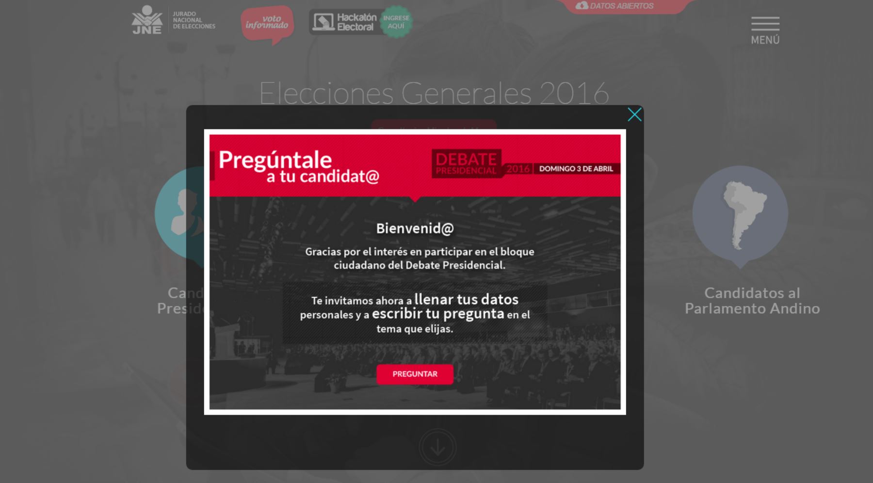 El Jurado Nacional de Elecciones (JNE), inició la campaña denominada: “Pregúntale a tu candidat@”, que permitirá a la ciudadanía participar con sus interrogantes en el debate presidencial del próximo domingo 03 de abril.
