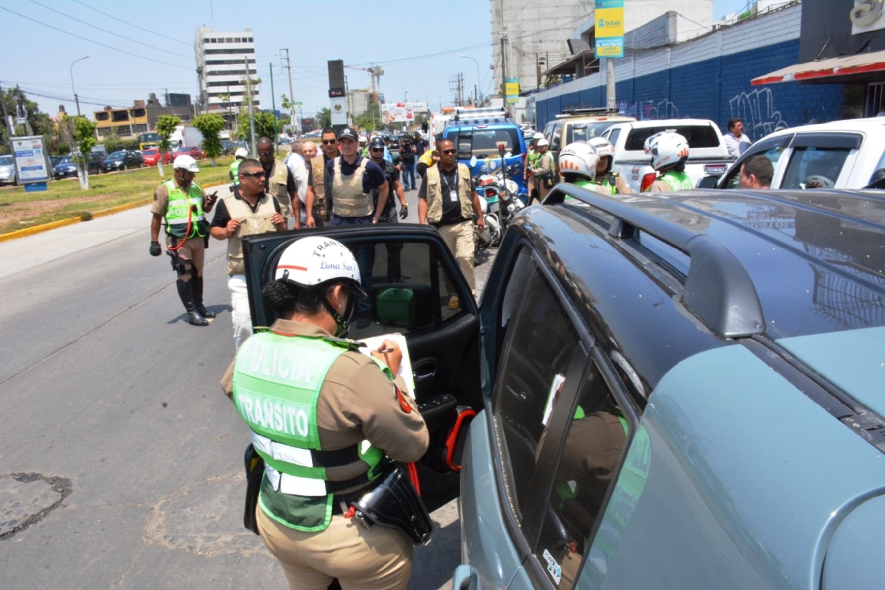 Se intervino a más de 50 unidades en el tramo de la avenida Arriola de la urbanización Santa Catalina, zona en la que se ubican diferentes empresas, entre ellas agencias de venta ambulatoria de autos, que estacionan sus vehículos en gran parte de la pista auxiliar y la vereda.