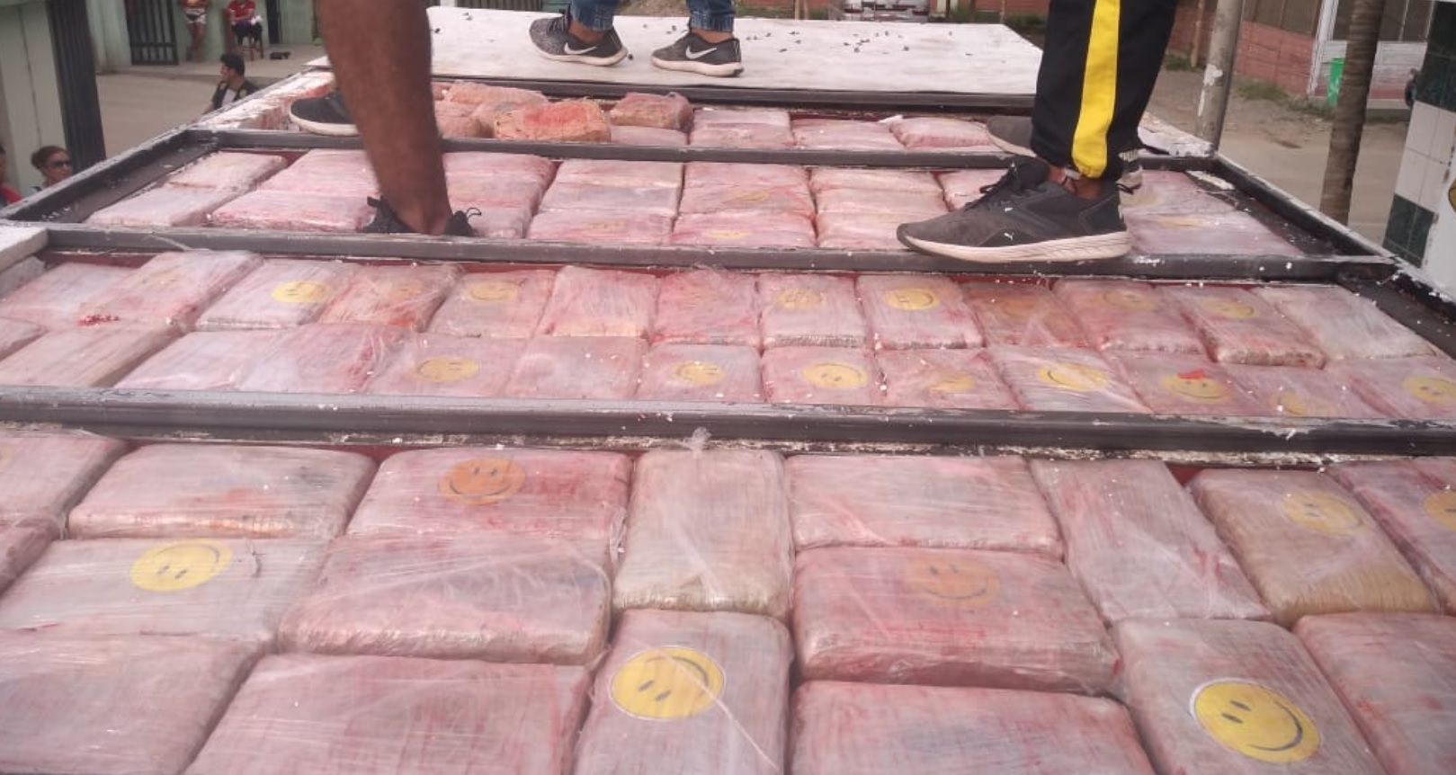 Pese a encontrarse vacío a simple vista, las autoridades notaron que las paredes y techo del vehículo presentaban varios remaches nuevos que, al ser retirados, revelaron que varios paquetes rectangulares, con adhesivos de carita feliz amarillo como distintivo, se escondían en su estructura interna. También se incautó un total de US$ 900 dólares y otra cantidad de soles en efectivo.