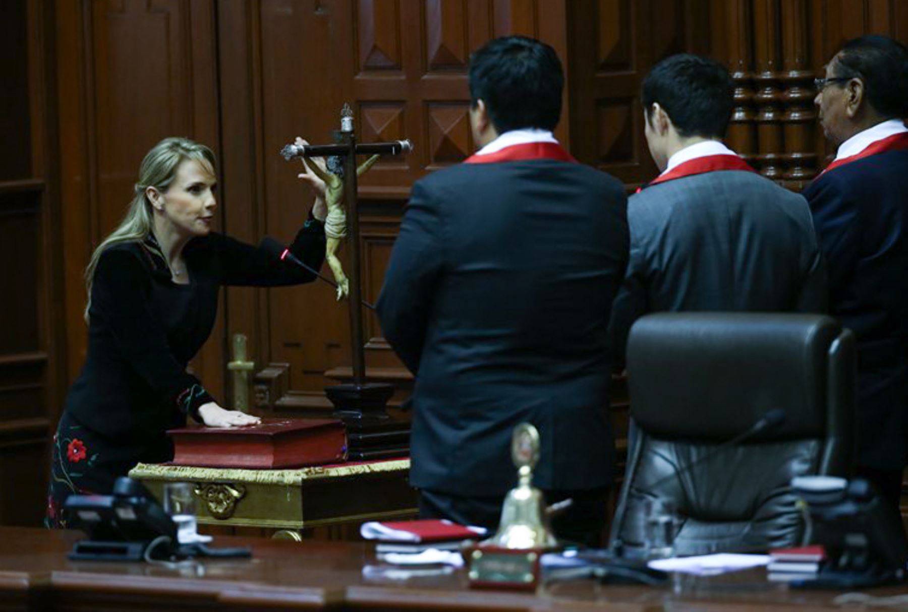 Con un breve "sí, juro", Fujimori Higuchi asumió un segundo periodo parlamentario y recibió la medalla que lo acredita como legislador.