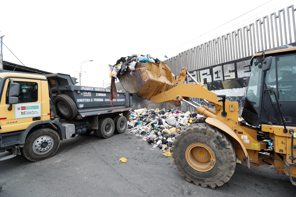 Maquinaria del Ministerio de Vivienda, Construcción y Saneamiento (MVCS) se puso a disposición de los vecinos de Villa María del Triunfo para realizar labores de recojo de basura. Se estima que durante la semana se retirará un total de 1500 toneladas de desperdicios.