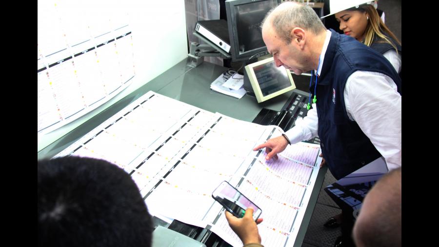 Esta actividad permitió verificar el diseño, los colores, las formas, las fotografías y los símbolos de las agrupaciones políticas participantes en las cédulas de sufragio; además de los exhaustivos controles de calidad que aplican los técnicos de la ONPE, quienes en tres turnos diarios asegurarán la culminación efectiva de este proceso.